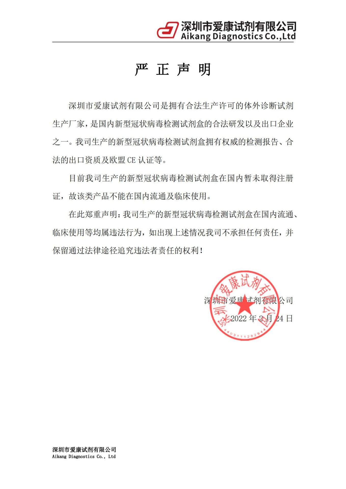 有关我司新冠试剂质量的正式说明